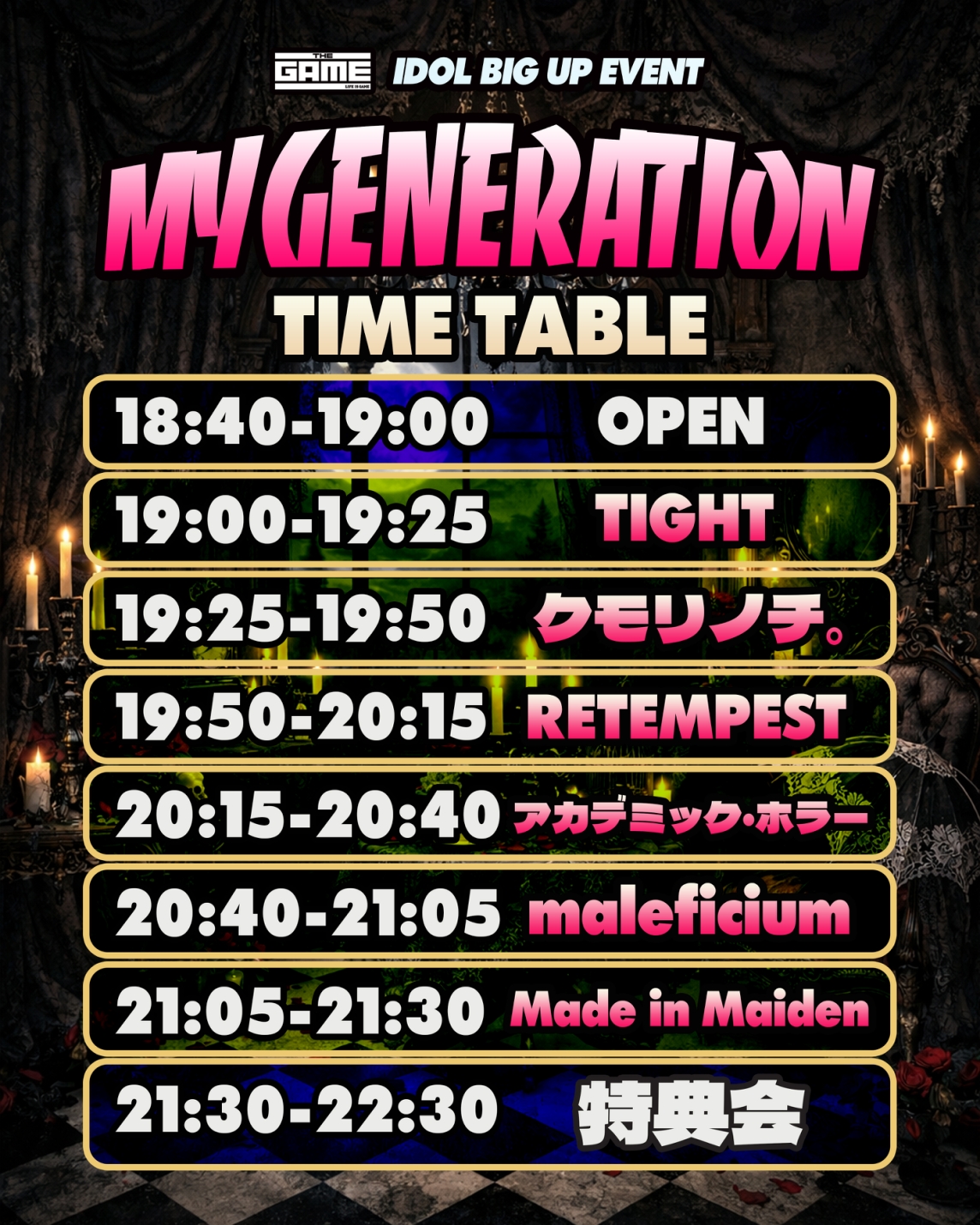 3月2日渋谷GAMEにて開催の『MY GENERATION』に出演が決定しました。