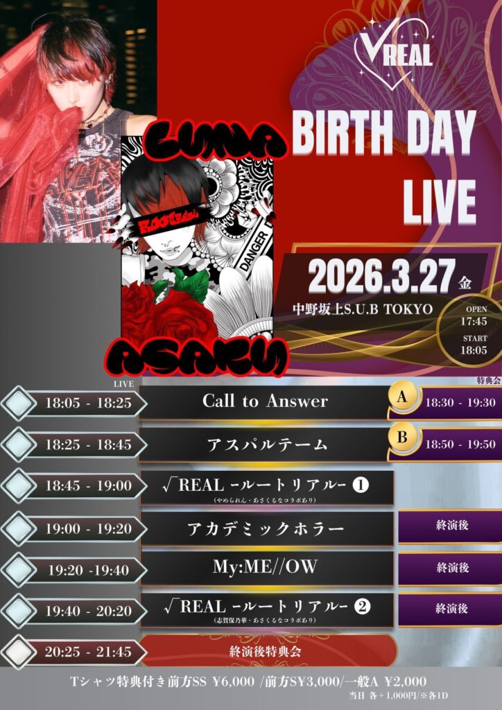 出演:√REAL ールートリアルー/志賀保乃華/Call to Answer/My:ME//OW/アカデミックホラー/アスパルテーム